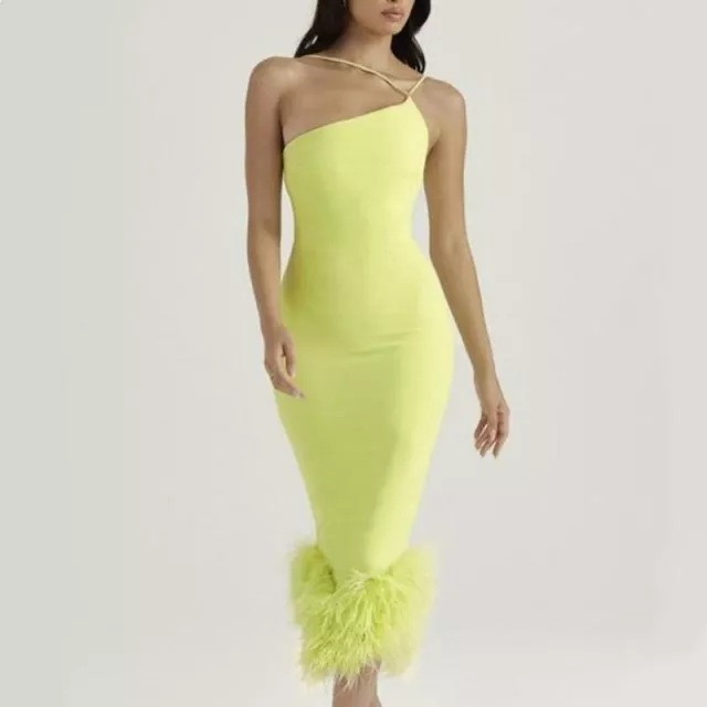 Our dress boasts an array of features that set it apart. The alluring off-shoulder, slash neck design elegantly showcases your neckline and shoulders, adding a touch of glamour. Made from high-quality milk fiber, this dress offers both durability and a luxurious feel against your skin. The solid pattern, combined with the exquisite fur decoration, adds a unique texture and an element of high fashion to your look. With its slim fit and medium stretch, the dress contours gracefully to your figure, ensuring both comfort and style.