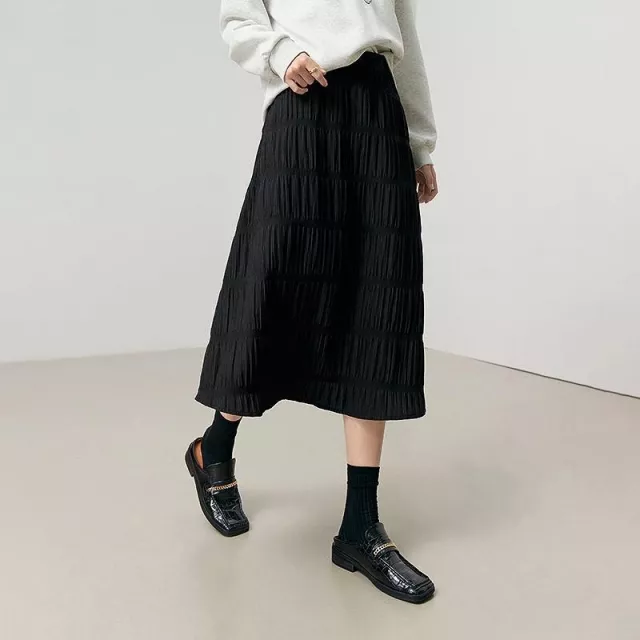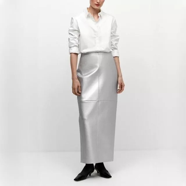 Featuring a unique patchwork pattern and glossy finish, this skirt effortlessly combines minimalist style with a bold, modern twist. The mid-calf length is perfect for both casual outings and semi-formal occasions, offering versatility that matches your dynamic lifestyle.