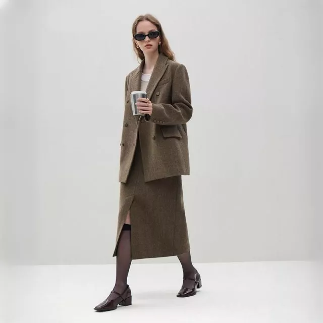 This High-end Woolen Coat + Skirt Set is more than just clothing; it’s a statement of elegance. The twill fabric, combined with the meticulous craftsmanship, sets it apart from the ordinary. The single-breasted closure adorned with buttons and pockets adds a touch of charm.